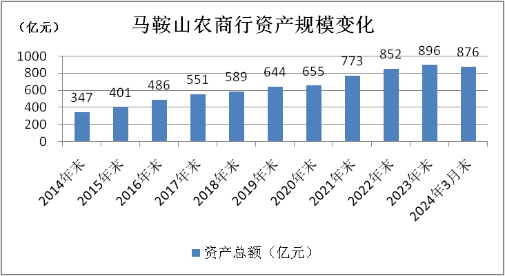 截至2024年3月末,马鞍山农商行资产总额为875.67亿元,较年初下降了1.97%。