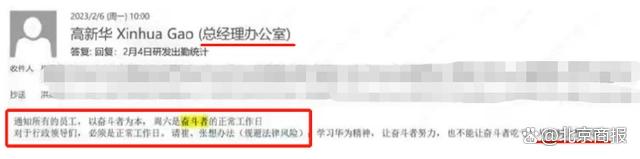 高新华进一步表示,发这个邮件肯定不是压榨员工,是针对的奋斗者,“不是针对普通员工,是愿意努力工作的”。