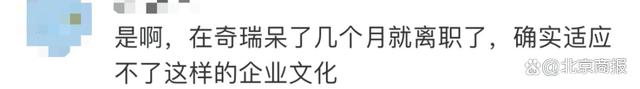一位2023年进入奇瑞汽车的应届生指出,奇瑞汽车人才流失率较高,应届生几乎不到一年走掉了七成,剩下的也只准备积攒两年工作经验后跳槽。