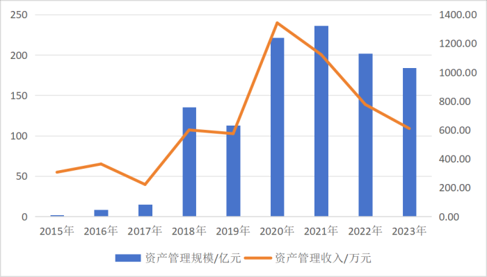 2018年至2021年,弘业期货资产管理业务规模出现爆发式增长,至2021年末,公司资产管理规模已达235.93亿元,此后,公司在管规模后有所下降,2023年跌回200亿元以下,年报提及公司资管规模位列行业前五。