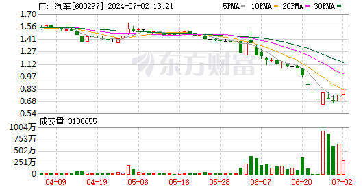 而在过去一周,广汇汽车已连续5个交易日股价跌破1元。此外,广汇汽车发布公告称,广汇转债连续十个交易日内(2024年6月12日至2024年6月25日)收盘价格跌幅偏离值累计超过50%。