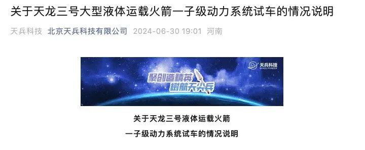 30日晚,北京天兵科技有限公司发布消息称,6月30日下午3点43分,天兵科技自主研制的天龙三号液体运载火箭在河南巩义市综合试验中心开展了一子级九机并联动力系统热试车。