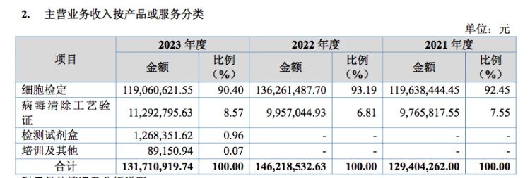 招股书指出,生物制品细胞质量控制、评估和检测服务行业作为生物医药服务业系国家重点鼓励的战略新兴产业,具有技术水平高、发展变化快的特点,公司密切关注行业技术发展,重视研发投入。报告期内,公司的研发费用分别为799万元、1099万元和1019万元,占营业收入比例分别为6.18%、7.50%和7.73%。在研发过程中,研发团队、管理水平、技术路线选择都会影响新项目和新技术研发的成败。如果公司在投入大量研发经费后,无法研发出具有商业价值、符合市场需求的项目或技术,将给公司的盈利能力带来不利影响。公司业务结构相对单一、市场竞争加剧的风险公司所处行业为技术含量高的服务性行业,技术复杂、更新迭代快,具有高毛利率的特征,未来可能有更多的竞争者进入该领域,公司营业收入占比较大的细胞检定业务将面对激烈的市场竞争。公司虽然投入了大量的人力、物力和财力进行应对,储备和研发了大量的核心技术、布局新产品、不断提升检测效率降低检测成本、积极开拓潜在客户,但新产品新业务产生收益仍需要一段较长的时间,短期内无法改变公司业务结构相对单一、行业竞争加剧的风险,并会对公司的持续经营能力产生不利影响。