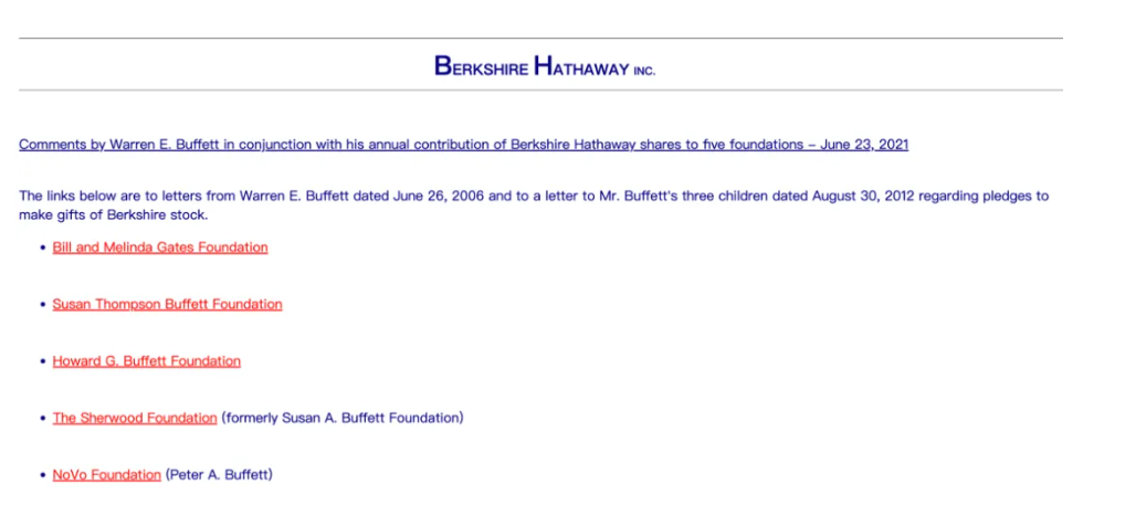 被誉为“奥马哈的先知”的巴菲特已承诺将他在伯克希尔所积累的财富捐赠出去,伯克希尔是他从1965年开始管理的位于内布拉斯加州奥马哈的联合大企业。自2006年以来,巴菲特一直在向这五个慈善机构进行年度捐赠。