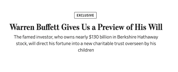 巴菲特此前曾表示,他的遗嘱将在他去世后公开。