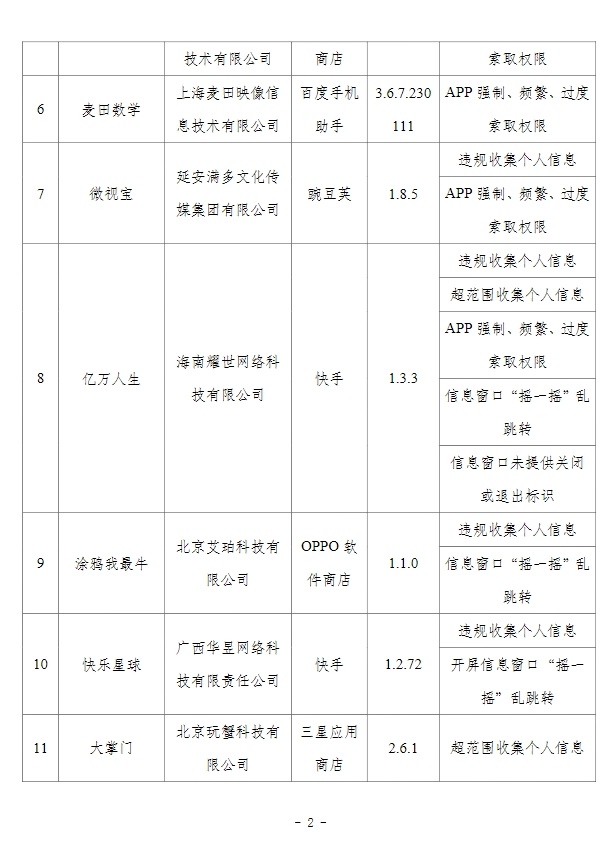 附件:工业和信息化部通报存在问题的APP(SDK)名单