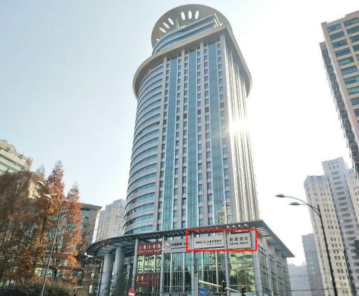 均瑶国际广场(红框内是华瑞银行与爱建信托的标识)