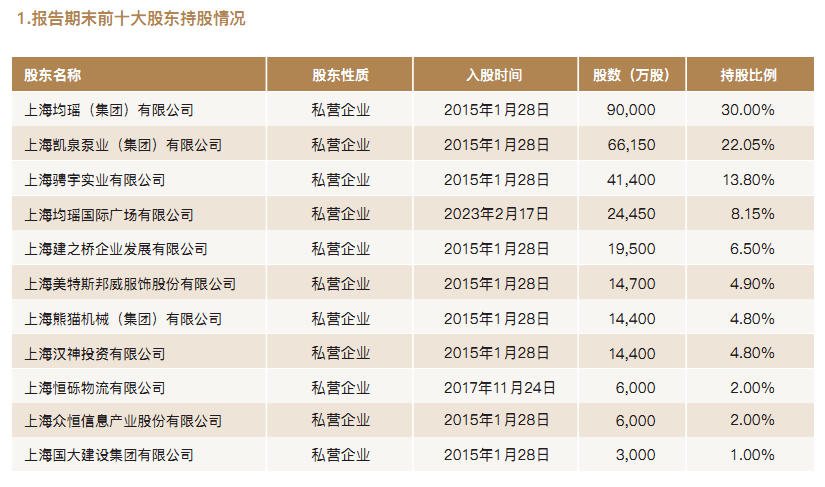 上述股权变更后,华瑞银行持股5%以上的主要股东变为,均瑶集团(38.15%)、凯泉泵业(22.05%)、骋宇实业-微创医疗(13.8%)、上海建之桥(6.5%),其中上海建之桥的持股在2023年底处于冻结状态。