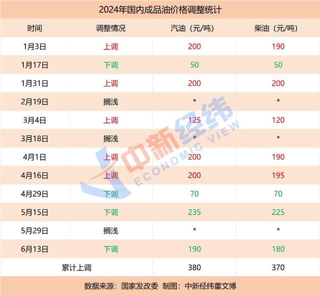 今年以来,国内成品油价已经历十二轮调整,呈现“五涨四跌三搁浅”格局,涨跌互抵后,汽、柴油标准品分别累计上涨380元/吨、370元/吨。若本轮调价落地,年内成品油价格调整将呈现“六涨四跌三搁浅”格局。