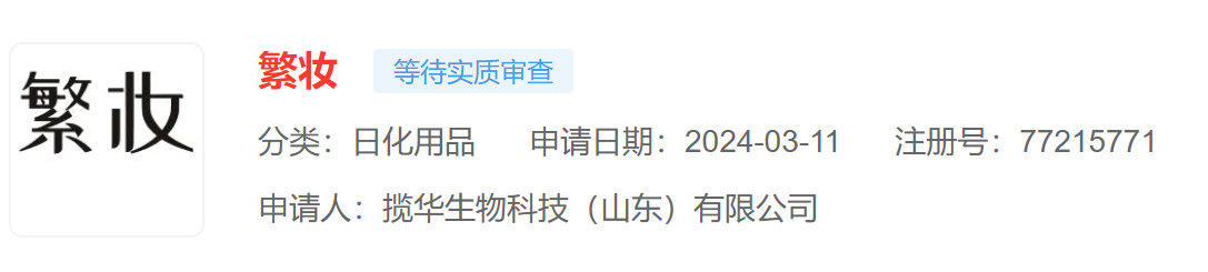 南财快讯记者注意到,枝繁繁提到了新品牌繁妆,天眼查显示,该商标归属于揽华生物科技(山东)有限公司,该公司成立于2024年2月9日,注册资本1000万元,法定代表人和实际控制人为刘莉娜。