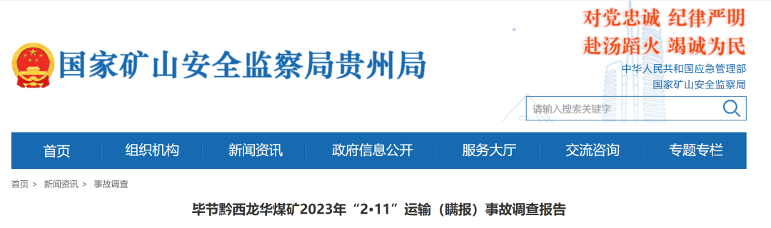 近日,国家矿山安全监察局贵州局公布了《毕节黔西龙华煤矿2023年“2·11”运输(瞒报)事故调查报告》。