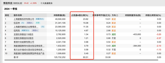 根据Wind显示,截至今年一季度末,博俊科技前十大流通股东合计持股比例为105.75%,这不符合常理的数据引发市场质疑。背后的真相到底是什么?