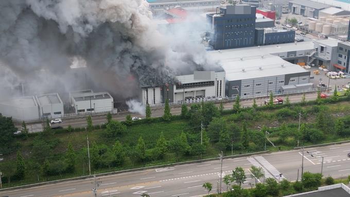 当天上午,韩国京畿道华城市一电池厂发生火灾。