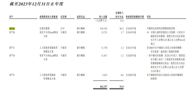 2023年,博尔捷营收与净利皆出现增速下滑,再加上过度依赖前五大客户,也为公司发展存在诸多不稳定因子。据招股书披露,博尔捷从前五大客户获得的收入占总收入比例的91%,其中最大客户“客户A”即占比86.3%,形成高度依赖。该名客户在中国即时消费服务行业占据领先地位。除了标准配送服务外,博尔捷亦通过向客户A提供自营本地服务获利,该项收入分别占总收入的9.7%、9.2%和1.0%。