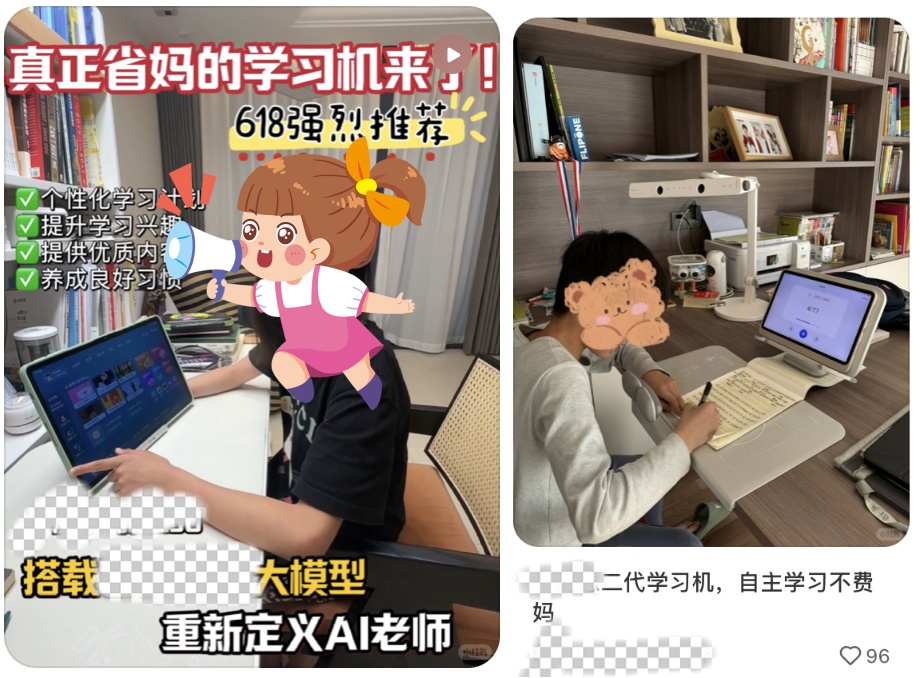 家长们比较多反映:“某品牌只是搭载护眼屏幕的Pad,广告宣传的所有软件免费,其实不是内置的都需要另外下载App,App里的课程还要另外购买付费。”“我们是中班,只是给孩子看内置的英文绘本资源,方便携带还不用买书了。选购了价格便宜的,等上学根据需求再考虑换贵价的学习机。”“什么电子产品都能玩,做作业的时候看他好似伏案学习,稍不留神,他就在看内置的绘本小说,还是要盯。”