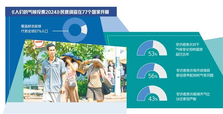 报告指出,此次民调在77个国家开展,覆盖样本能够代表全球87%的人口,是当今世界上关于气候变化议题的最大规模的民意调查。民调充分显示了民众如何经历气候危机带来的冲击,以及希望世界各国领导人如何应对。此次民调的实施背景是气候变化速度超过预期,全球温室气体排放不断增加,多国经历了迄今为止最严重的极端天气。上述因素叠加,使得此次民调在时机上尤为关键。