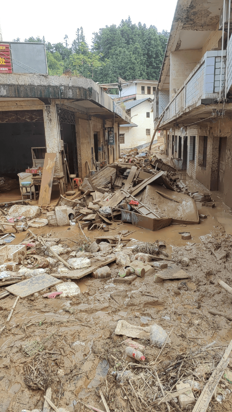 湍溪村卫生所肖医生告诉记者,事发后他的卫生站物资基本全部都被冲走或泡坏,口罩、消毒药物等物资无法分派给村民。肖医生对当下村里的卫生情况也表示担忧,“现在最需要的是做街道消毒,还有抗感染的、应对肠道疾病的药物要到位。”