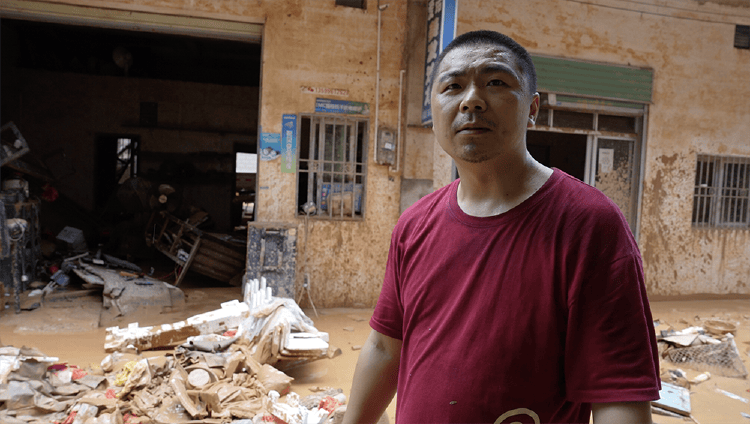 距离谢力的冰箱约20米处,是村民谢皑一家经营的家具店。谢皑向记者展示了二楼的家具碎块和一楼没过脚面的淤泥,这已经是他们一家清理三天后的成果。谢皑称,16日水灾来临后,村子就断了生活用水,水退去后,家家户户只能暂时把裹着泥的衣物、家具倾倒到街上。没有办法冲刷清洗,导致街道的清理进展缓慢。