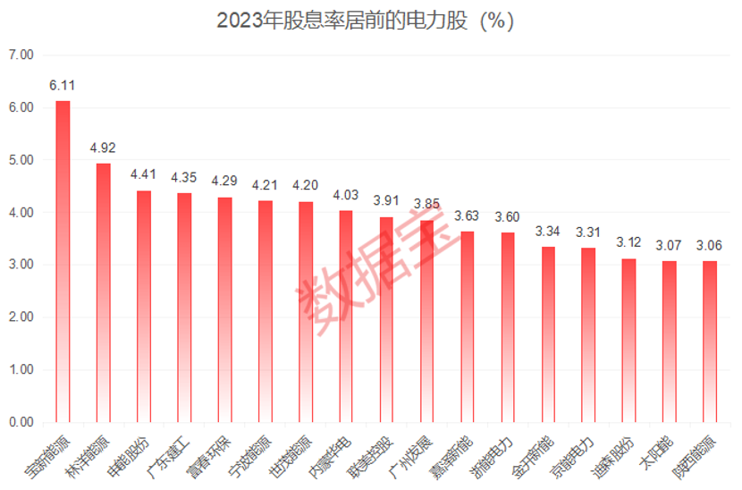 从2023年股息率来看,宝新能源、林洋能源、申能股份、联美控股等多股股息率超3%。