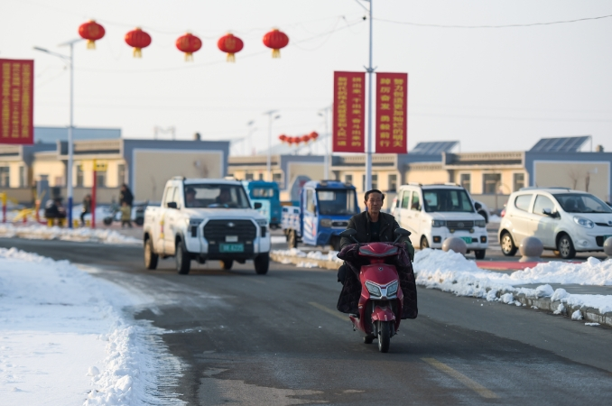 村民骑电动自行车行进在柏油路上 图片来源:新华社记者 李志鹏 摄
