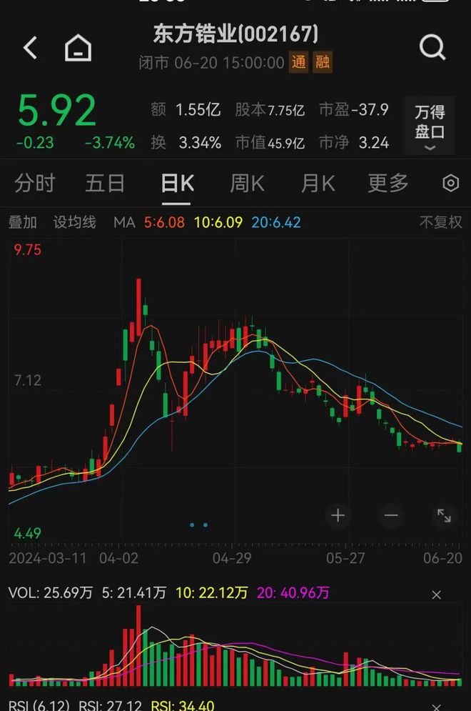 截至6月20日收盘,龙佰集团市值为443亿元,而东方锆业市值则为45.9亿元。两家上市公司市值合计近500亿元。