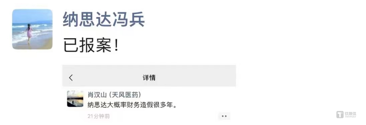此外,肖汉山的言论是否属于实?纳思达冯兵是否为公司员工?冯兵在朋友圈所谓的报案是否真实?钛媒体APP以投资人身份联系纳思达,公司表示,肖汉山言论属于造谣,纳思达冯兵为公司员工,并且冯兵的举报属实并非转发朋友圈而已。