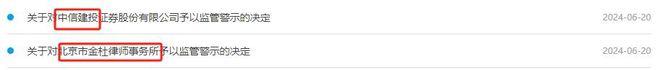 6月20日,上交所网站发布监管措施决定,对中信建投、金杜律所予以监管警示。
