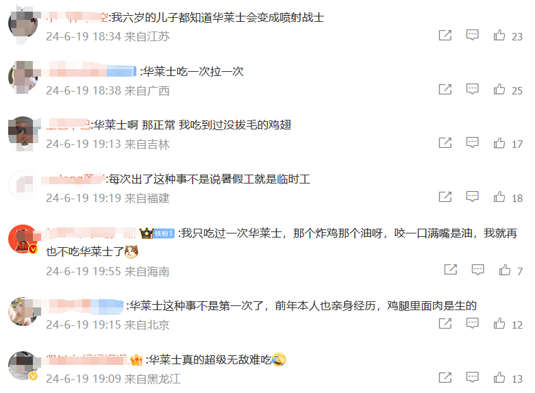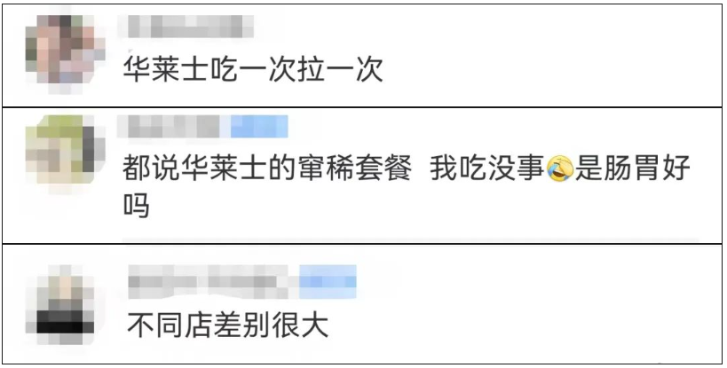 有网友评论称,“塔斯汀也是这样,好几次了,商家都喜欢嘴硬”“华莱士吃一次拉一次”“不是第一次了”。但也有人表示,“我吃没事,是肠胃好吗”“不同店差别很大”。