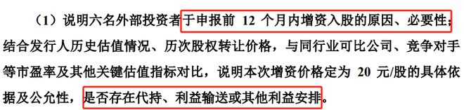 深交所要求感臻智能说明六名外部投资者于申报前12个月内增资入股的原因、必要性;结合公司历史估值情况、历次股权转让价格,与同行业可比公司、竞争对手等市盈率及其他关键估值指标对比,说明本次增资价格定为20元/股的具体依据及公允性,是否存在代持、利益输送或其他利益安排。