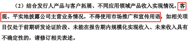 首轮问询中,深交所对 感臻智能的业务描述似乎颇有微词,要求其结合产品与客户拓展、不同应用领域产品收入实现情况,客观、平实地披露主营业务情况,不得使用市场推广和宣传用语。“如相关项目仅处于前期研发论证阶段、未能在报告期内规模化实现收入、未来收入具有不确定性的,请修订相关表述”。