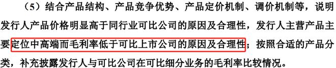 申报材料还显示,受生产模式、销售区域及经营策略不同影响,报告期内公司主营毛利率水平整体低于同行业平均水平,而公司却称主营产品主要定位中高端。