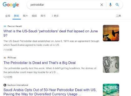 不过,由谷歌搜索“石油美元”(petrodollar)一词不难发现,并没有多少具有权威性的西方主流媒体或中东官媒对此进行报道,消息的传播与国内类似,大多存在于一些自媒体和二三流的财经媒体或报刊。它们也同样没有给出任何可靠的信源。