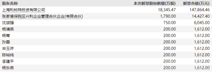 根据计划,7月26日利柏特有2.27亿股首发限售股解禁,占总股本比例的50.45%,约合市值19亿元。
