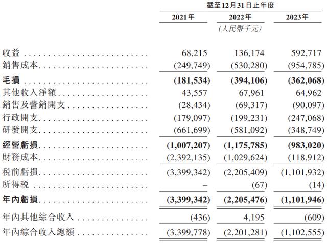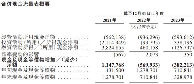 招股书显示,2021年、2022年及2023年(统称“报告期内”),英诺赛科实现收入分别是6821.5万元、1.36亿元、5.93亿元,同期分别亏损34亿元、22.05亿元、11.02亿元,累计亏损额约67亿元。报告期内,该公司的经营活动所用现金净额分别是5.62亿元、9.36亿元、5.94亿元,其年末现金及现金等价物分别是12.79亿元、7.11亿元、3.29亿元、