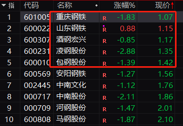一些钢铁企业同样经营欠佳,包括重庆钢铁、酒钢宏兴、凌钢股份、安阳钢铁等,这几家公司股价也���离1元不远的位置,不少低于1.5元。