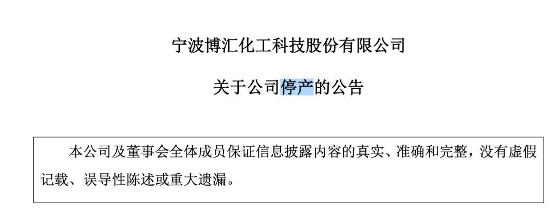 6月13日晚间,宁波博汇化工科技股份有限公司(博汇股份,300839.SZ)公告,基于目前公司经营资金困难,根据公司董事会审议通过的《关于公司停产的议案》,公司于2024年6月12日起对40万吨/年芳烃抽提装置、40万吨/年环保芳烃油生产装置及相关配套装置进行停产。
