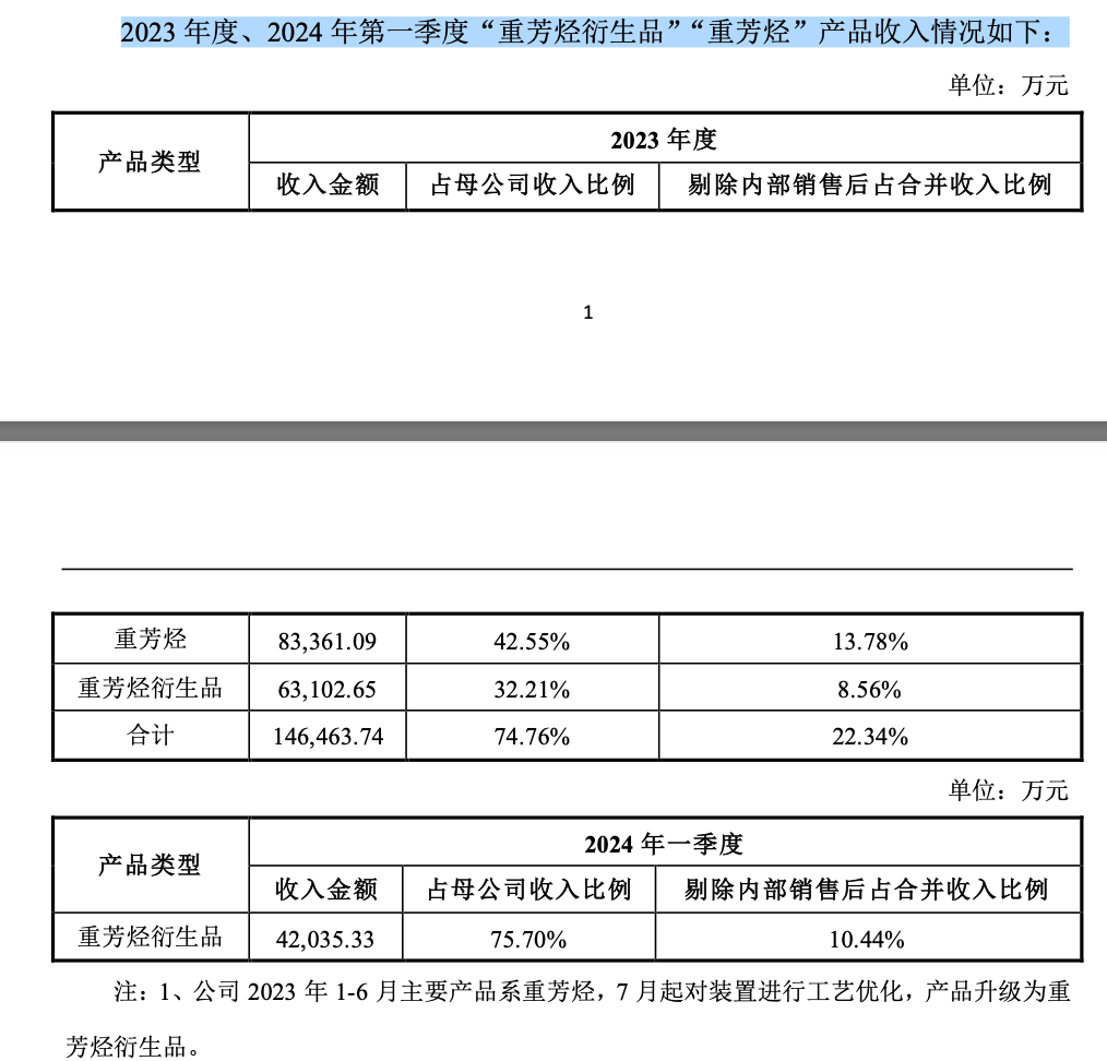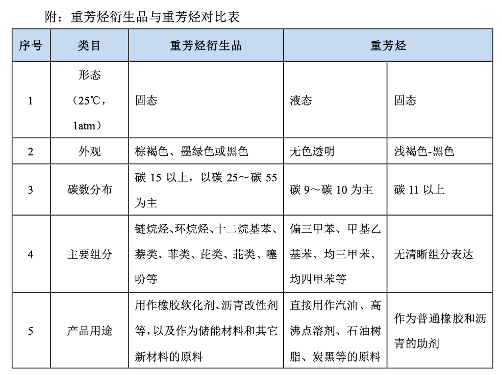 对于重芳烃衍生品和重芳烃两种产品用途上的区别,博汇股份表示重芳烃衍生品用作橡胶软化剂、沥青改性剂等,以及作为储能材料和其它新材料的精细切割原料,不适用于调和成品油。呈液态的重芳烃一般可用作高沸点溶剂、石油树脂、炭黑等的原料,也可以直接调和汽、柴油;呈固态的重芳烃作为普通橡胶和沥青的助剂,或作为新材料加工企业的原料,但不适用于调和汽、柴油。