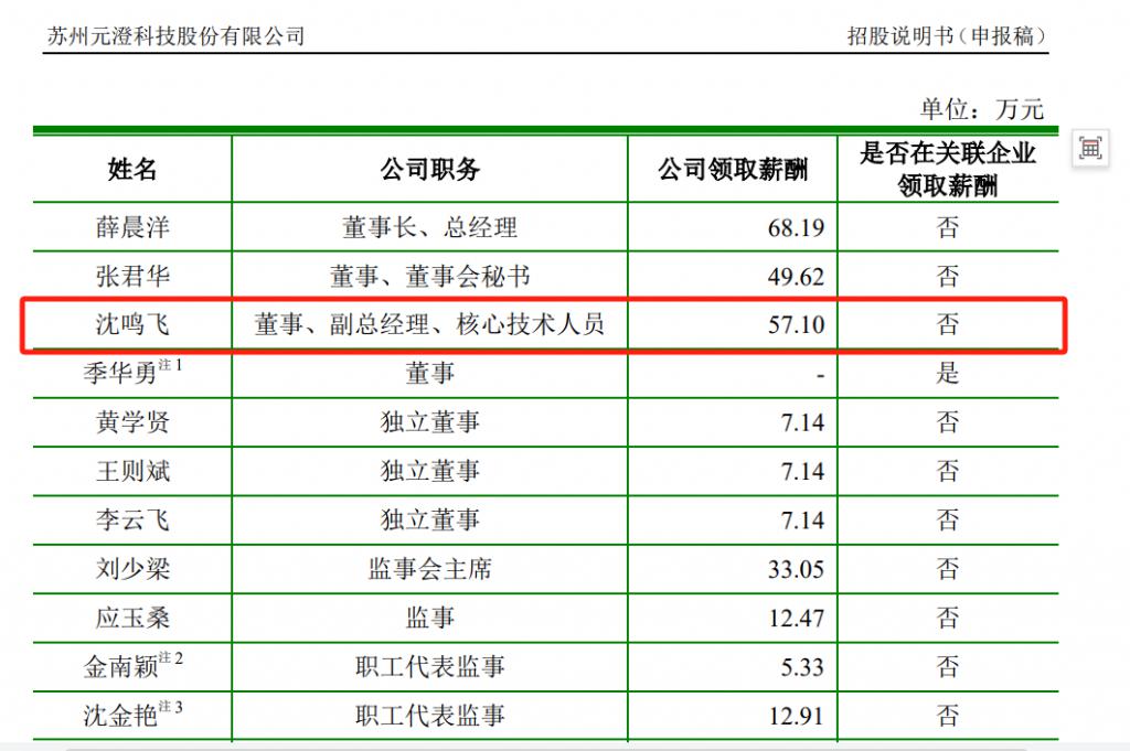 元澄科技董事、董事会秘书张君华为董事、副总经理沈鸣飞先生表姐。2022 年度,沈鸣飞从元澄科技领取薪酬为 57.1 万元。