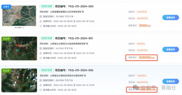 早在今年2月份,兰花科创就曾公告称,公司要参与两座煤矿探矿权的竞拍,但最终并未竞拍成功。前述两宗煤炭探矿权颇受追捧,引来省内外多家大企业入局争夺,众资本参与下,价格一路飙涨,起始价分别为500万元、1500万元,最终以63亿、140亿元的价格成交。