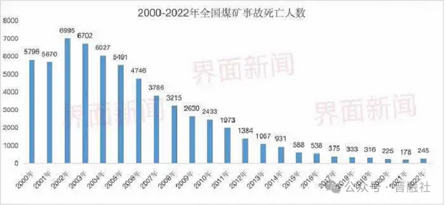 此前,界面新闻曾做过一个统计,自2002年以来,煤矿事故的死亡人数持续下降,但进入2021年以来,又出现一定程度反弹呢。20多年来,国内煤矿安全事故死亡人数从2002年6995人下降到2021年178人,但从2022年开始反弹至245人,2023年反弹之势仍在持续。