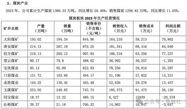 该公司2023年报显示,公司煤炭产业现有各类矿井13个,年设计能力1990万吨。