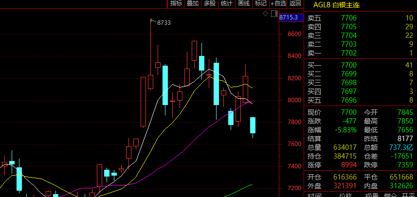6月11日早盘,国内期货市场上贵金属价格无意外走出补跌行情,主力合约中沪银一度大跌超6%,沪金跌超3%。