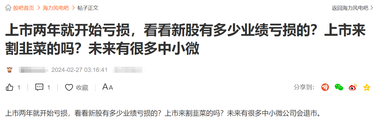 时代财经发现,在投资者交流互动平台上,诸多股民对于海力风电上市后的业绩变脸表示不满。