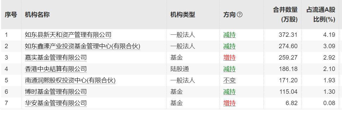 Wind数据显示,2024年第一季度,包括如东县新天和资产管理有限公司、如东鑫濠产业投资基金管理中心(有限合伙)、香港中央结算有限公司、博时基金管理有限公司在内的四家机构减持海力风电,同时,嘉实基金管理有限公司、华安基金管理有限公司两家基金选择增持海力风电。