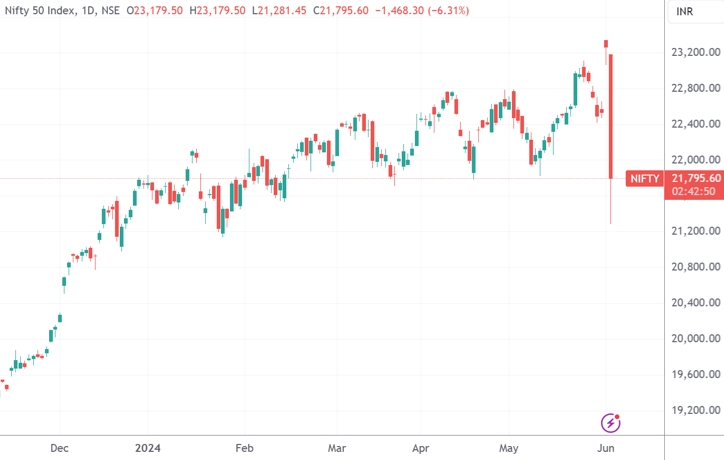 截至发稿,反映印度市场基准的“漂亮50”指数NIFTY 50大跌近6%,日内跌幅一度达到8%,昨日该指数还基于大选结果的积极情绪跳涨超3%,续刷历史新高。值得一提的是,A股市场的印度主题QDII基金也在午后开盘后出现了一波跳水。