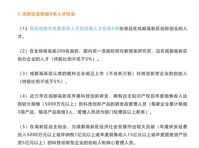 蓝鲸新闻查阅到成都市高新金熊猫B类人才的认定标准: