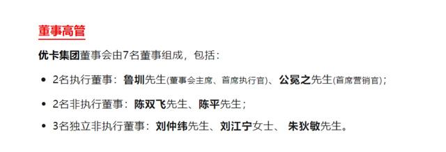 招股书显示,股东架构方面,优卡集团在上市前的股东架构中,鲁圳(执行董事、董事会主席、首席执行官及控股股东)通过优卡持股66.98%;二股东陈双飞通过优幸持股14.33%,为非执行董事;周德尧通过优信持股9.55%;郑冀川通过优云持股4.68%;陈平纬晨投资持股0.96%;受限制股份单位计划,持股3.5%。值得一提的是,优卡集团的所有股东中,除了鲁圳,其余人均不是执行董事。