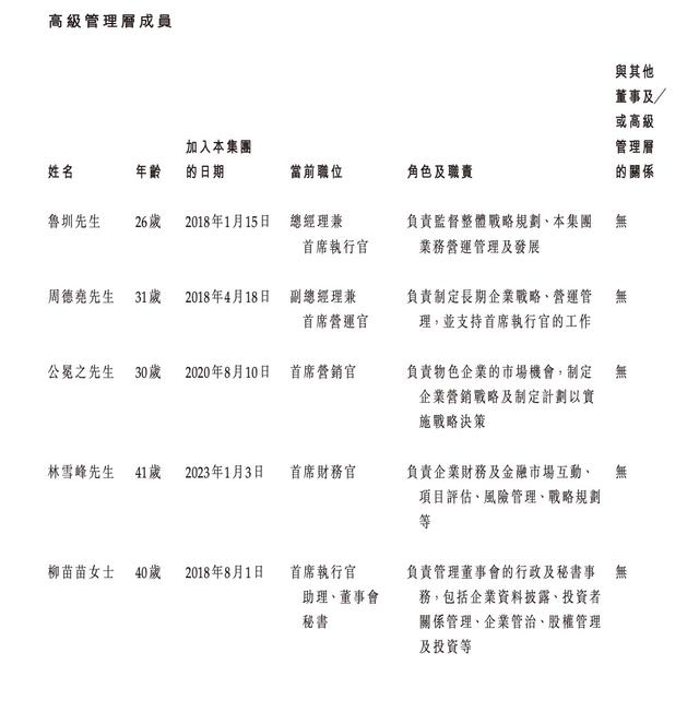 执行层面,鲁圳为集团总经理,周德尧为副总经理,公冕之为首席营销官,林雪峰为首席财务官,柳苗苗为首席执行官。