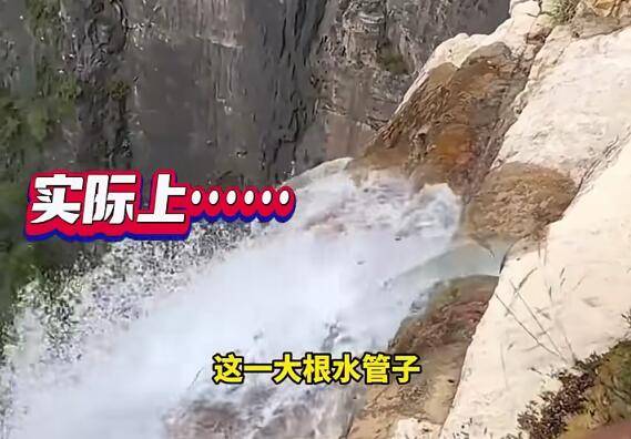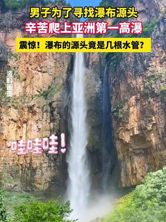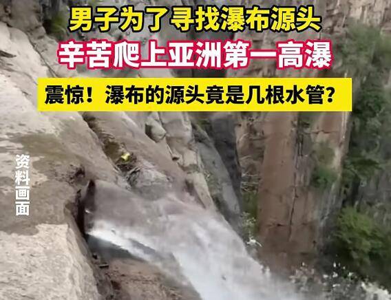 6月3日,网传一男子爬上河南云台山瀑布探寻尽头,竟发现源头是几根水管,引发关注。