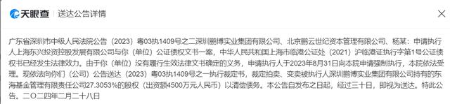 深圳市中级人民法院根据相关规定,对鹏博实业持有的东海基金股权进行拍卖、变卖,以清偿债务。
